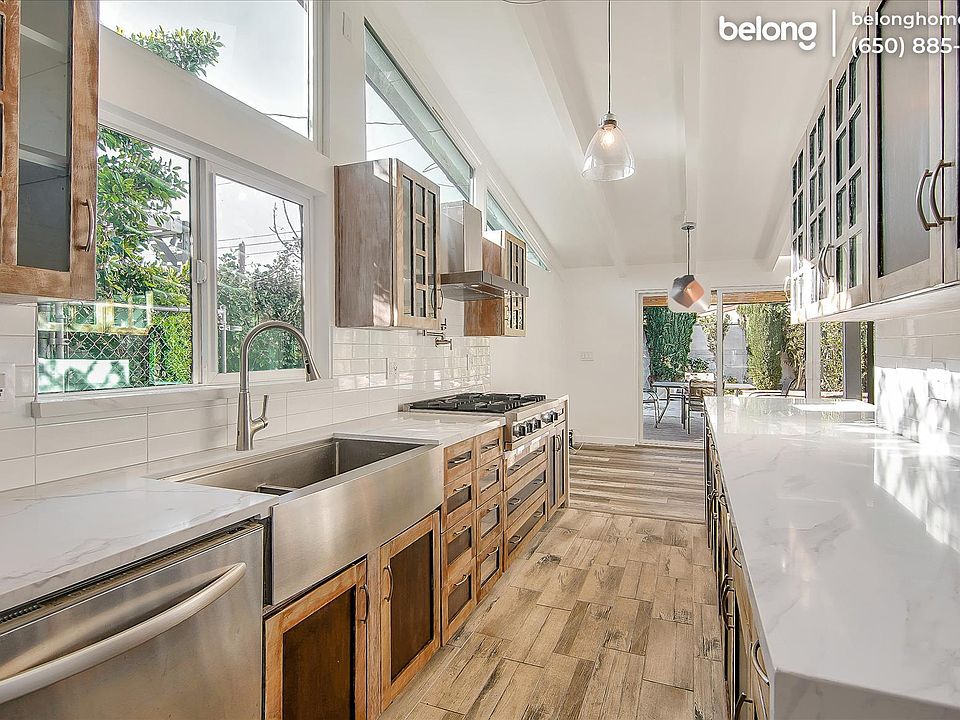 This newly renovated modern stunner features luxe finishes and upgrades perfect for a family who loves entertaining! The brand-new, never used, upgraded kitchen features white marble countertops that beautifully complement the organic wood tones of the cabinets. Heaps of natural light graze through your space, making it feel fresh and vibrant while highlighting the bright wooden beam ceilings!