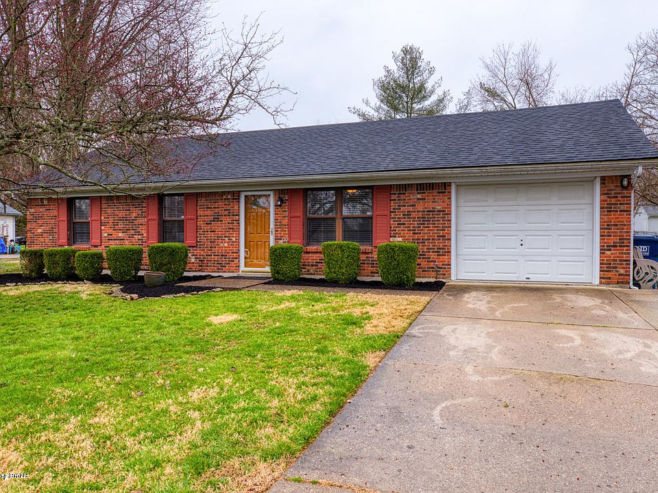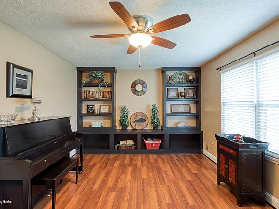 Welcome Home! Move in Ready Adorable Brick Ranch has many recent updates. Award winning South Oldham County Schools!!! This 3 Bedroom 1 Bath offers laminate wood flooring through Living Room, Kitchen, and Hall. Eat-In Kitchen with plenty of cabinets with all appliances to remain with property to include range, refrigerator, dishwasher, microwave, and washer/dryer. Update bath. Cozy vaulted Family room with beautiful tile flooring features a fireplace with insert and blower. Newer ceiling fans (one in each room including covered porch) installed in 2015. Custom built in wood wall units and shelving in Living room, Office, and two Bedroom closets. Large Covered Rear Porch could easily be screened into be a sunroom addition. Fully fenced in Yard. Huge Storage shed with built in wood workbench