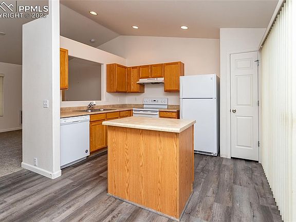Welcome to this delightful ranch-style home that features comfortable, one-level living. This property offers a range of features that make it the perfect place to call home. As you step inside, you'll immediately notice the brand new flooring that spans throughout the kitchen, living room, bedrooms, and entry. The kitchen is large enough for a small breakfast table and includes a small island as well. The large living area gives you plenty of room to relax, watch tv, play games...whatever suits your fancy. The spacious master suite boasts an attached bathroom featuring dual vanities, plus a large walk-in closet. The HVAC system is up-to-date, with the furnace having been replaced in 2020 and the air conditioning unit in 2019. These upgrades ensure year-round comfort and efficiency, giving you peace of mind and reducing maintenance expenses. The exterior of the home is as charming as the interior. A well-maintained front yard, a front porch, and a backyard patio provide excellent spaces for outdoor enjoyment, whether it's relaxing on a sunny afternoon or hosting a barbecue with friends and family. This home is conveniently located near the Powers Corridor, so shopping, restaurants and entertainment options are numerous and close by. Plus, schools and parks are nearby too. This super cute and clean ranch-style home with brand new flooring and updated HVAC systems is move-in ready and awaits you as its new owner. This home has everything you need, now all it needs is you!