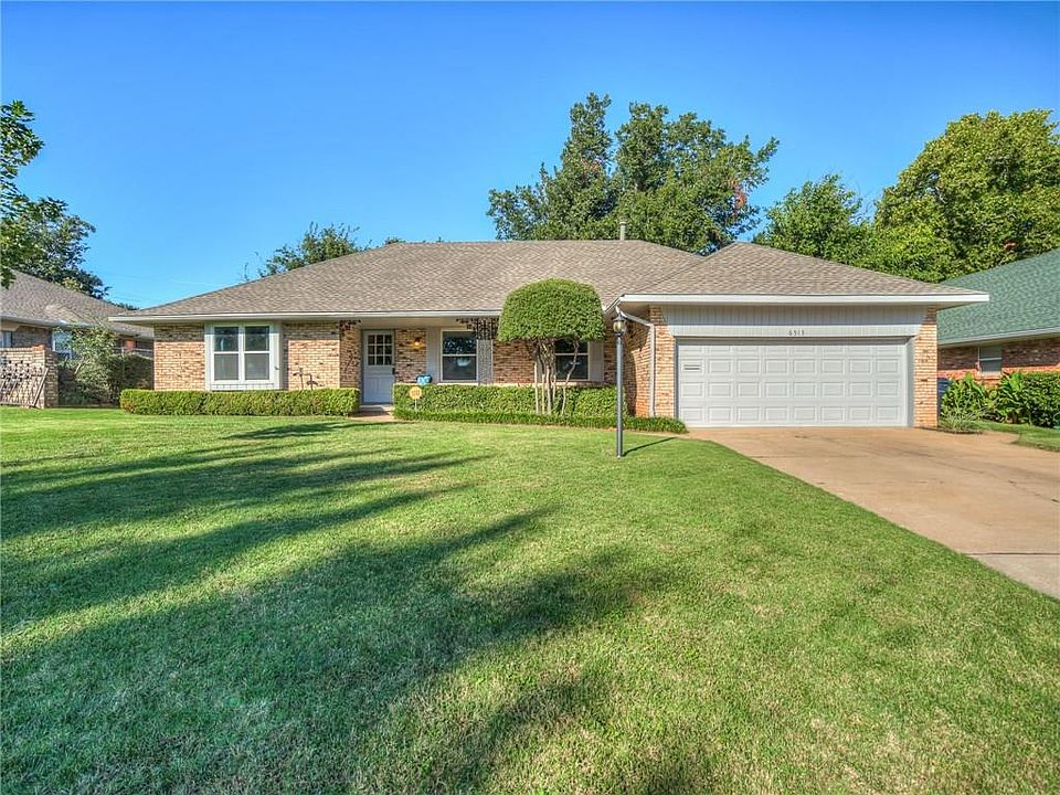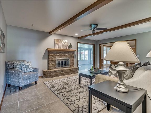 Well cared for spacious three bedroom two bath with a very versatile floor plan with options for three living rooms and two dining rooms. New low maintenance tiled flooring through common areas and new carpet in bedrooms. Large living room features beamed ceilings and a wood burning fireplace. Lots of storage and counter space in the kitchen with a built-in buffet and breakfast bar connected to the kitchen eating area, living room and screened in patio/Florida room. Master is large enough for a king size bed with a two large closets and bathroom. Roof and Vinyl windows replaced in recent years. Large back yard. Great curb appeal with landscaping and a large front porch. Quiet neighborhood in the heart of NW OKC with easy access to dining & shopping. Walking distance to Lake Hefner, boasting walking/running and biking trails, golf, sailboating, wakeboarding, kayaking, fishing, picnics, and playgrounds.