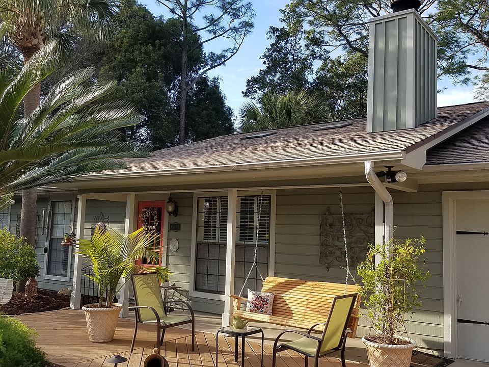Single family home located less than 2 miles from Navy base. Close to grocery stores excellent restaurants and beach. Lot next to house is part of property and is completely fenced in. Side lot is well lit at night with vintage strung lights and also has a fire pit for those chilly nights.