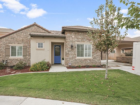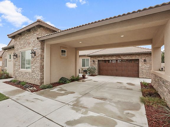 This stunning home is perfectly nestled in the highly desired neighborhood of San Marino Subdivision in NW Visalia! Everything about this home speaks elegance from greeting guests in the large foyer area before entering the gorgeous kitchen and great room. The owners spared no expense when adding tile flooring to all high traffic areas in the home, upgraged carpet in the 3 bedrooms plus office/library as well as crown molding throughout and french doors off the dining area. Custom installed shutters and window coverings also included. Your family gatherings this holiday season can be enjoyed outdoors as well in the manicured backyard and cozied up with a blanket next to the firepit or enjoying warm conversations in the side courtyard area. The Porte Cochere provides additional covered parking space. Energy efficient features include solar panels. An absolute beauty and ready to view in person. Call today to set your appt for a private showing!