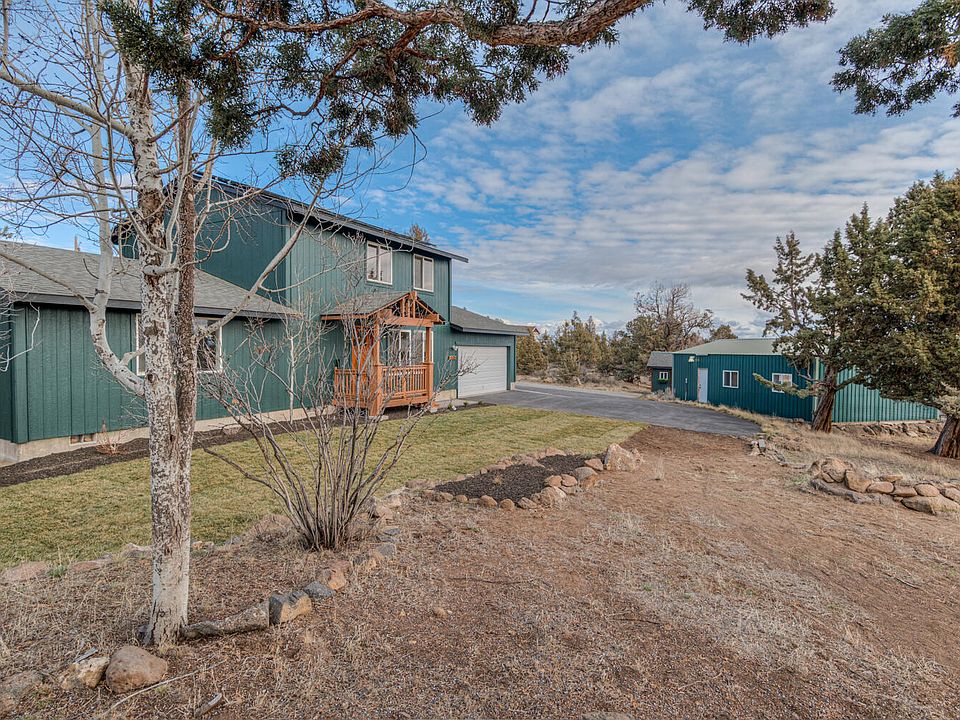 Beautiful gated 3 bedroom, 2 bath home on a fully fenced 3.67 acres! The property features a paved driveway, large insulated detached shop, attached 2 car garage, garden shed, and a fenced area for horses or goats. The home is equipped with solar panels. New irrigated front lawn, new interior and exterior paint, new appliances, new flooring, and newly remodeled bathrooms. Use the entire upstairs as your master or as a second living area. Property is serviced by Long Butte Water. Super easy access to HWY 97. Located just a few minutes outside of Bend. Seller is a licensed realtor in Oregon.