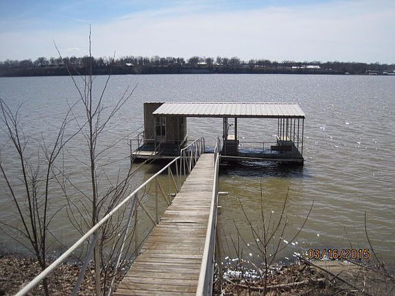 Lake front property with two slip boat dock priced to sell! One and half story home with approximately 1,500 square feet of living space, 2 bedrooms, living room, den, beautiful kitchen, screened in front porch, carport, garage and workshop. Vacant and ready for new owner!