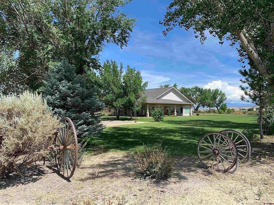 Privacy and quiet views from this sprawling ranch style home located on 8.7 acres in an awesome private setting featuring mature landscape w/big shade trees and a wonderful covered porch to relax and enjoy it all from. Includes a 30'x40' shop w/concrete floor & 220 power, a 30'x60' open equipment shed and a 40'x80' open hay barn. The home was built in 2004 and does not have a small space in it! Featuring a huge great room w/gas fireplace, large dining area and big kitchen w/lots of cabinets & counter space, kitchen bar and pantry closet. Spacious master suite w/patio door to side deck, 2 big walk-in closets and private bath w/custom tiled shower w/bench seat, a jetted tub in tile surround and an extra long vanity. 2 more large bedrooms, full bath, and an extra large office/den (or 4th bedroom) w/bay window. Convenient laundry room includes lots a cabinets & counter space, utility sink and storage closet. The attached garage is oversized and can accomodate 2+ vehicles. The home has gas forced air heat & central air, and a central vacuum. This property is a great set up w/room for machinery and hobby farm. Acreage includes a 2 m/l acre hay field w/irrigation water for it and the gravity fed sprinkler system on the yard. This property has been well cared for and is move in ready.