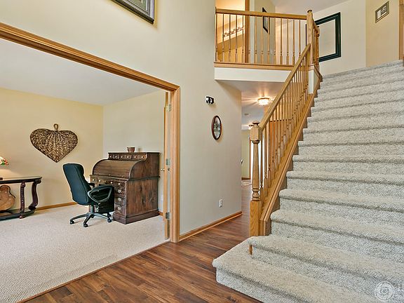 Impeccably maintained 4 bedroom 2 1/2 bath home in desirable White Caps subdivision. Home is situated on a cul-de-sac with one of the largest lots in the neighborhood.. Welcoming foyer that opens to living/dining room. Spacious family room with fireplace & large eat in Kitchen with island. Sliding doors off of kitchen that lead to the patio and yard for outdoor entertaining space. Upper level features 3 generous sized bedrooms and master suite with his and her walk-in closet. Partially finished lower level Rec Room for additional space. Conveniently located close to Nash school, shopping, restaurants, & I94.