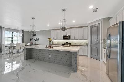 This beautiful home is in a brand new concept of "green" solar community in Lakewood Ranch Polo Run! This Newer home has been completely remodeled new incredibly oversized 3ft x 6ft stunning porcelain tile, quartz countertops throughout, all new light fixtures, plumbing fixtures, brand new modern bathrooms, 8 foot custom doors with custom door casings and baseboards, Double Barn Doors to Den, Incredible custom ceiling designs and ship lap in several rooms, Led Fireplace. A truly Oversized Master Shower 10' x 5'. An outdoor kitchen with dual zone refrigerator. The upgrades in this home will WOW anyone that walks in the door! This home also has solar panels that generate electricity that can be fed back to the grid, a beautiful pool, spa with a Spectacular Lake View! The amenity center Is a resort style. Residents will enjoy abundant amenities, including a clubhouse campus with fitness center, resort style pool, tennis courts, bocce ball, basketball courts, playground and more!