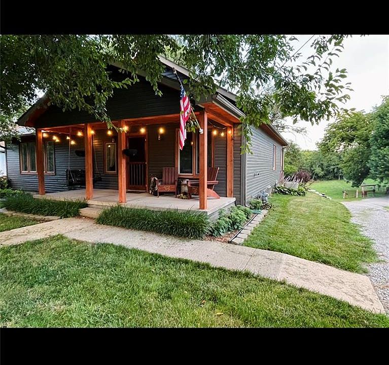 The exterior of the house has updated dark grey siding with brand new show stopping cedar soffits. The front porch is cozy with its warm tongue and groove cedar ceiling and cedar wrapped posts. Perennial flower beds encircle the home making it a stand out all summer long!