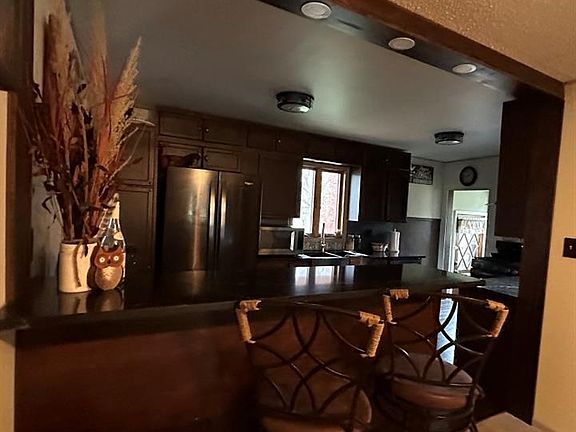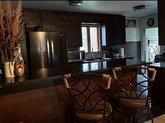 This home has been remodeled and is move in ready! It has stunning black quartz counter tops complete with brand new oak kitchen cabinets. A formal dining room with a view of the property sits on the west end of the house, perfect for sunset lit dinners! The dining area boasts a large walk-in pantry as well as the back door to the deck over looking a retaining wall with a patio perfect for hosting outdoor seating.