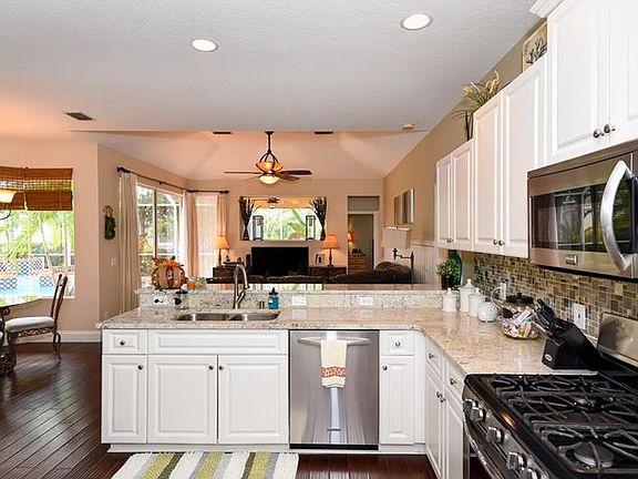Beautifully updated pool home in Lakewood Ranch with four bedrooms, three bathrooms and a den located on a cul de sac street with mature trees and landscaping. As you enter you will see the wood floors flowing throughout the home. The neutral colors and many large windows and sliders surrounding the pool area, along with the southern exposure makes the home very bright and airy. There are many upgrades including granite countertops throughout, wainscoting in family room and hallway, six inch baseboards, glass pantry door, stainless appliances, tile backsplash, updated bathroom and kitchen fixtures and sinks to name a few. The lanai has two large roof covered areas with ceiling fans, great for entertaining. The pool and spa has 4 waterfall features along with a solar heater and brand new gas heater. The master bedroom and bathroom are very spacious with plenty of closet space. This home is a must see!