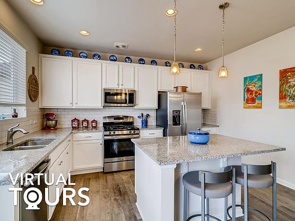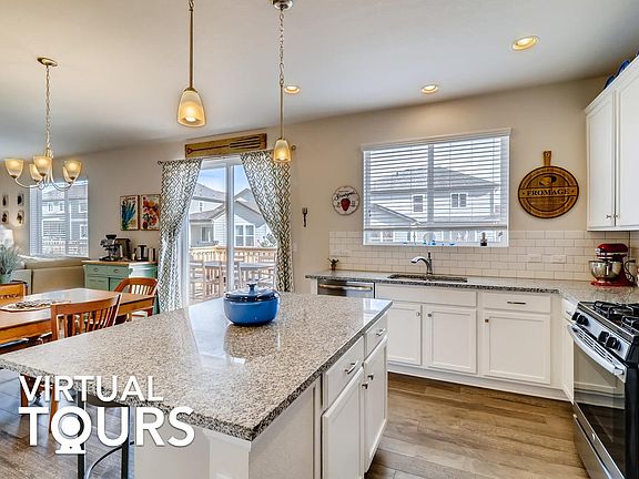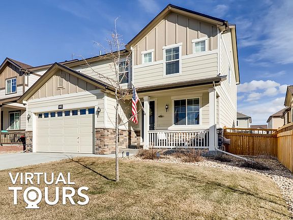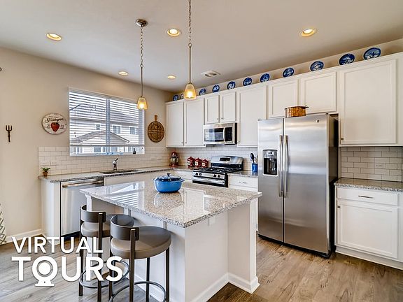 Every REX home comes with a 30-day buyback guarantee. Terms and conditions apply. Stunning, practically new home with 3 bedrooms, 2.5 bathrooms, and 2,152 square feet in West Frederick! Just three years old, this pristine home showcases a gorgeous open concept living and dining layout, huge master suite, home office, and amazing back deck. Quaint home office is the perfect work-from-home space with carpet flooring, ceiling fan, and great natural light. Warm and welcoming living area is ideal for a cozy movie night with carpet flooring and gas burning fireplace. Designer kitchen is an absolute showstopper with like-new stainless-steel appliances, crisp white cabinetry, gray wood laminate flooring, granite countertops, subway tile backsplash, walk-in pantry, and large center island with breakfast bar. Upstairs also showcases a bonus loft, perfect for use as a playroom or entertainment center. All three bedrooms are located upstairs and include carpet flooring, ample closet space, and plenty of natural light. Master suite is spectacular with a modern stencil accent wall, sitting area, and en-suite bathroom with extra-wide vanity and glass enclosed walk-in shower with tile surround. Picturesque backyard is perfect for entertaining with large Trex deck with wood railing, brick patio seating area, and raised garden beds. Unfinished 948sf basement. Amazing mountain views! Amenities include a community pool, park, playground and clubhouse! Great school district includes top-rated Erie High School. Conveniently located just off I-25 and 30-minutes from Downtown Denver,Boulder, and the airport. This home is ready for you!