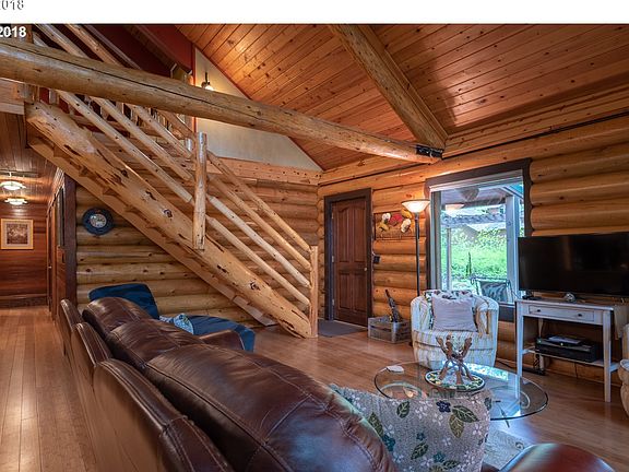 BACK ON MARKET! OTHER BUYER'S HOME DID NOT SELL. LOG HOME. GORGEOUS HAND HEWN LOG TRUSSES INSIDE!! OPEN & LOVELY FOR ENTERTAINING, HAS RENTED WELL FOR VACATION PROPERTY ACESS PATH WITH JUST STEPS TO SANDY RIVER!!! HEAR THE RIVER FROM THE DECK. LOFT CAN BE BEDROOM OR RECREATIONAL ROOM. MINUTES TO MT. HOOD. SELLER HAS OTHER "TIFFANY STAINED GLASS" HANGING LIGHTS AS WELL IF BUYER WOULD LIKE TO EXCHANGE OUT. LOTS OF WINDOWS AND LIGHT.