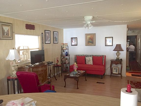 *** REDUCED FOR A FAST SALE *** This charming, Partially Furnished 2 Bedroom, 1 Bath Home in Orangewood Lakes, has a lot to offer. It is on a desirable lot with no one behind you. There is a bit of privacy in the back and even an Outdoor Shower. There is lots of space outside with two patios and potential out back to make your Florida Oasis. The large Florida Room has lovely wood accented vinyl tile that would be a great space for visiting guests. This home has been freshly painted inside and out and the Roof was recently shingled in 2015. The Central A/C is only 5 years old and was serviced in March of this year. The very large Kitchen has a breakfast nook and also a table with six chairs. There is a bright Bay Window to let the sunshine in as well as lots of cabinets for storage, a brand new stove and a cute built in corner cabinet. The kitchen opens up to the comfortable Living Room with a nice wood laminate floor. Down the hall, you will find your brand new high quality Washer and Dryer inside the home. The bathroom is large and has a new vinyl tile floor and a Step- in Shower. The Larger Bedroom has a beautiful solid wood bedroom set and double closets. The smaller bedroom has a closet and an armoire for plenty of storage. Orangewood Lakes is a very active park with weekly live entertainment and dinners, card games, bingo and much more. Amenities include a Heated Pool, Shuffle Board, Clubhouse and three sport fishing lakes. Very Low Low Lot Rent of $405 which includes water, sewer, trash, and all the park amenities. Lawn care is only an additional $15 per month. This is a Pet Friendly Community allowing 2 small pets up to 20 Lbs. This is a 55+ Community. You are able to rent out on a month to month basis. To make an appointment to see this home - CONTACT—CHERYL—941-894-2894. -------------------------------------- CASH ONLY -------------------------------------- Brokered and Advertised by Sunset Mobile Home Sales Disclaimer: All listing information is deemed reliable but not guaranteed and should be independently verified through personal inspection by appropriate professionals. Sunset Mobile Home Sales cannot guarantee or warrant the accuracy of this information or condition of any property. The buyer assumes full responsibility for obtaining all current rates of lot rent, fees, or pass-on costs associated with the community, park, or home from the community/park manager. Sunset Mobile Home Sales is not responsible for quoting of said fees or policies.