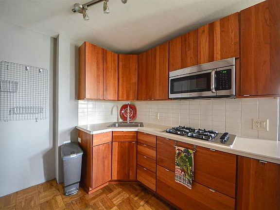 A Room with a View! This studio condo offers a breathtaking riverscape of the NYC sky line and Hudson River. Enjoy cooking your authentic cuisines or your favorite take-out in your recently renovated kitchen. The custom made cherry wood with natural finish cabinets and high end stainless steel appliances was specifically designed to provide space and practicality for your studio. With easy commute to city and the supermarket, shops and restaurants within walking distance, this is a must have! Enjoy the convenience of wash dry room and gym in building, plus the security of 24hr doorman, what moor can you ask for?, Come and see for yourself, you won't be disappointed.