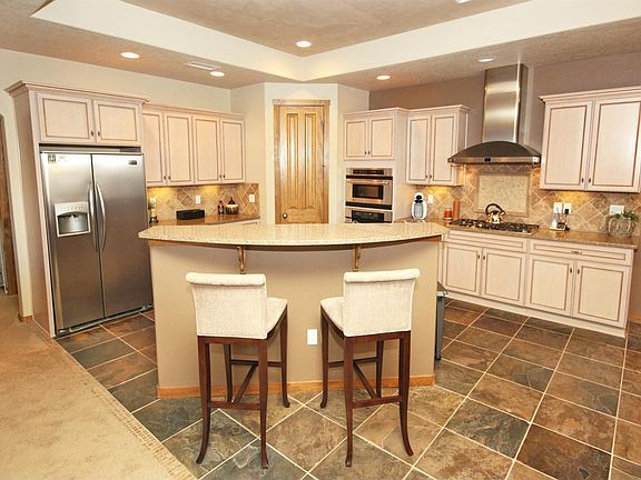 Former Tiffany model home with all the bells and whistles! 2x6 Framing, Pella Windows and Doors, GE Monogram Stainless Steel Appliances, Beautiful Slate Tile, Vigas and Latillas, Custom Cabinetry, Granite Counters and Window Sills throughout! The back yard is fully landscaped with an Extended Patio and Outdoor Fireplace. The garage is finished with an epoxied floor. The utility room is equipped for 2 pairs washers and dryers. This home is truly a showplace and a warm haven for your family.