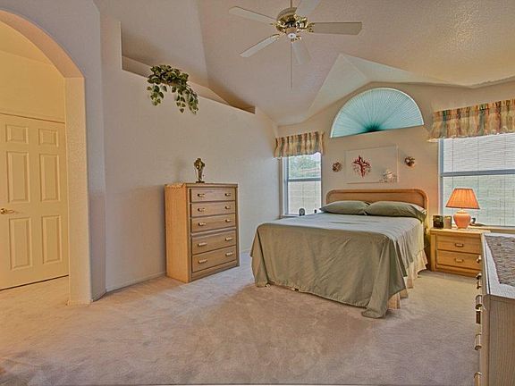 Decorator paint throughout with ceiling fans, arched windows, plant shelves and more! Double door entry into large master bedroom suite. Master bath has walk in closet, separate shower and tub, with toilet behind closed doors. Very spacious home in a great community. This one won't last long!