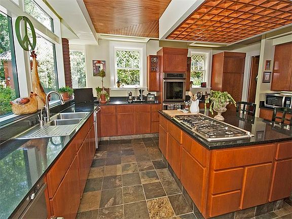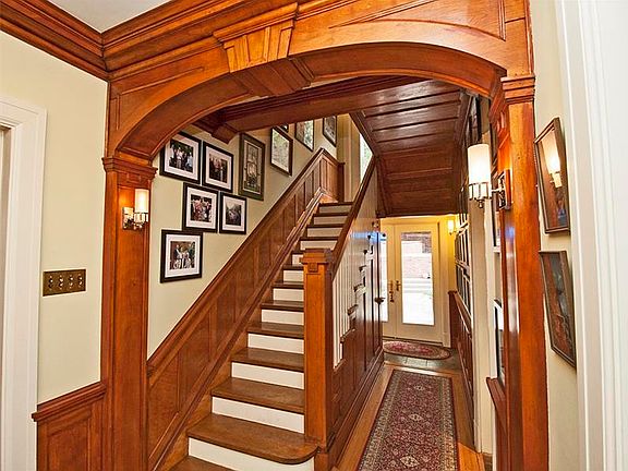 An extraordinary one of a kind home and property in a tranquil setting. The interior is worthy of "Architectural Digest," featuring a unique combination of old world charm, Art Deco, and energetic ambience; living room w/gleaming hardwood flrs, hand painted ceiling, fireplace (double sided with Sun rm);beveled mirrors, Fr. doors, window seat,custom shutters, and ornate woodwork;Sunroom perfect for comfortable reading w/radiant heat and inviting view of perennial garden; DR with beautiful woodwork & hand painted ceiling,custom shutters-perfect for elegant entertaining; eat-in-kitchen designed for serious cooks with commercial grade ref, dble ovens, custom cherry cabinets, granite counters and stunning view of the waterfall & pond;Fam rm w/custom designed built-in desk &bookcases,fireplace ;Private master suite and gorgeous custom spa style bath & dual built-in closets w/ dressers;third fl has two large bedrms, new bath, cedar closet. Dramatic home office over 2-car garage and much more!
