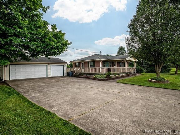 Who needs LOTS of garage space?! Oversized 3 car detached garage and additional 1 car detached garage accompany this completely updated 3 bedroom, 1 bath home on full basement. Brand new kitchen, updated bath and new luxury vinyl plank flooring throughout. Beautiful country setting just minutes to Highland Hills Middle School and Floyd Central High School. All appliances are included and all furnishings except the beds are negotiable. Relax on the covered front porch and enjoy beautiful farmland views. Sits on over half acre corner lot. One seller is a licensed real estate agent.