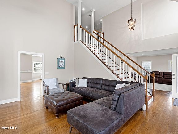 The peaceful country setting you've been seeking, just minutes to the conveniences of city hubs and the sandy shores of our Brunswick Beaches. The 2500+ square foot home sits handsomely on a .63 acre parcel. Wrap around porches stir up images of afternoons spent visiting with family, a cold drink, relaxing in a porch swing. Entering, you're welcomed by 2 gracious living areas, vaulted ceilings and an abundance of light flooding through the windows. Hardwoods and neutral paint colors add to the spaces' warmth. Options are endless for these front rooms, they could serve as den, office, dining room, or possibly close one off for a private guest room. In the rear of the home the kitchen is wrapped with windows and back door leading to more porch area. Breakfast nook allows for even a large dining table plus the center island offers additional seating. The cabinets are a rich cream hue and are enhanced by the granite surfaces and stainless-steel appliances. Off the kitchen is a powder room & mud room with laundry. Finishing off downstairs is the master bedroom and recently remodeled ensuite with dual vanity, soaking tub & walk in shower with dual shower heads. The walk-in closet is essentially a dressing room with task lighting, mirror & built-in cabinetry galore. Upstairs is spacious! Loft area with full bathroom at the top of the stairs is flanked by 2 enormous bedrooms. The carpeting on the second floor as well as master was new in 2022. Outdoors is more your thing? The home has a side load 2-car garage & there is a storage shed in the back yard to use as you desire. But lets talk built in peace of mind. HVAC systems new in 2024 with 10-year parts warranty. Crawl space fully encapsulated w/ 2 new sump pumps and dehumidifier in 2024. Roof replaced in 2022. And to top it off, this home carries a termite bond AND sellers offering a one-year 2-10 home warranty for future buyer. Y'all hurry and come tour this delightful home in the sweetest little town of Winnabow.