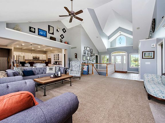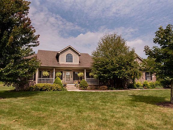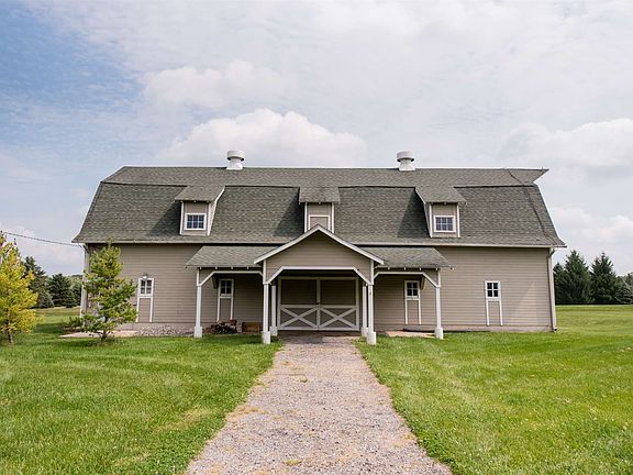 Beautiful property on 5.3 acres! This stunning ranch home has a finished basement, complete with lower level kitchen and 2 stairways for access! There is a large front porch to welcome your guests! Main floor has dramatic ceilings in main level great room, split floor plan with 3 generous sized bedrooms, beautiful open concept kitchen, formal dining room, breakfast area, and a screened porch to sit and enjoy the private back yard. Master bedroom has 2 tiered ceiling, beautiful wood wall, private en suite with his and hers closets. Daylight lower level has family room, 4th bedroom, full kitchen, den, workout room and full bath. Outside you will find an inground pool, pool house, underground dog fencing and a large 3 floored barn that once was the home of the Cedar Creek Christmas Tree farm! Barn is heated and has a/c. Close to hospitals, interstate, and in Leo School District!