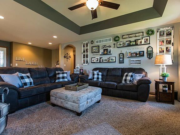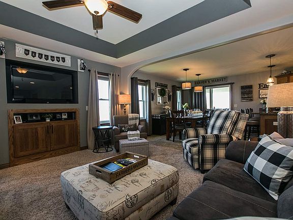 This walkout ranch home is loaded with upgrades!! Features 5BR, 3BA, 3 Car garage plus garden garage below, 2x6 construction, finished lower level with family room, bathroom and bedrooms, professionally landscaped all the way around the house, Faust custom cabinets throughout home, snack bar in kitchen, spacious dining area, upgraded trim package, trey ceilings in living room and master bedroom, formal entryway, zero step entry to home, large master suite with walk-in closet and master bathroom, main floor laundry, heated whirlpool tub in main bathroom, patio, covered maintenance free deck, LOTS of storage and much more!! 5th bedroom is non-conforming.