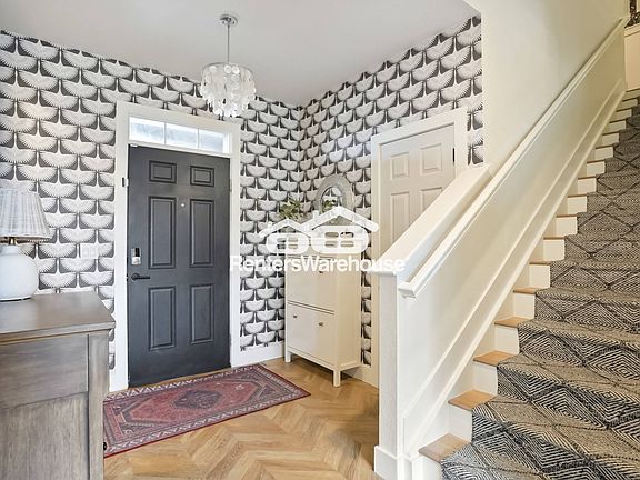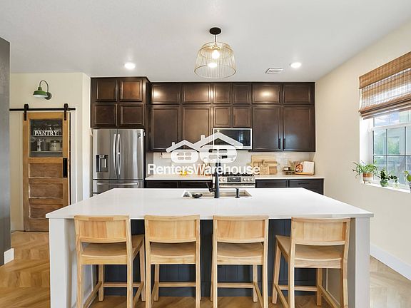 This home is truly stunning, you will not be disappointed. The moment you walk in you'll appreciate the custom designed chevron pattern parquet wood flooring throughout the main level, designer wallpaper, custom murals and carefully selected light fixtures. The main level consists of a chef's kitchen, great room, and powder room. The chef's kitchen enjoys a giant island with waterfall design quartz countertops, top-notch stainless-steel appliances, and custom light fixtures. The great room is large and is excellent for entertaining, it opens to a spacious west facing covered porch area ideal for taking in summer sunsets. The yard is good sized. Upstairs the primary suite is exceptionally remodeled with a spa-like 5 piece bath including a soaking tub, frameless walk-in shower, custom pedestal sinks, and flawless selections of fixtures and wallpaper. There is a custom office nook on this level along with two secondary bathrooms and a remodeled bathroom. This property is well located in Painted Prairie with easy access to the airport, shopping, and the gaylord hotel. 1 Pet Considered. 1% Monthly Processing Fee $199 One Time Lease Writing Fee $60 Application Fee Renters Warehouse accepts portable screening reports (PTSR) pursuant to 38-12-902(2.5) Pet Fee $35/Mo