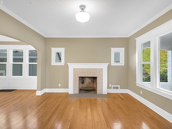 From the moment you step foot onto the glistening hardwood, covered porch and enter this gorgeous home, you feel right at home. Interior of home is completely updated with hardwood floors, painted brick fireplace, wainscoting, crown molding, all new vinal windows, new plumbing, new electrical system, new roof. Kitchen includes stainless steel appliances and quartz counter tops. Huge unfinished basement w/ separate entrance. Detached ADU off garage. [Home Energy Score = 4. HES Report at https://rpt.greenbuildingregistry.com/hes/OR10207120]