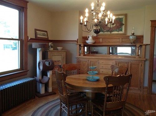 The Old World Charm of Brick and wood make this home that was built around the 1900s, a true piece of our heritage. The solid structure features a remodeled kitchen with custom cabinets, laminate flooring and counter-tops. The bathroom is also remodeled, hardwood floors in dining room and living room. BDRMs have hardwood floors under carpet. Just a few more perks - Newer windows, beautiful hot water registers, newer CA, 14 of insulation in attic and sprayed insulation on top of walls in cellar. One stained glass window at staircase. Beautiful front door. Built in buffet for all your china and linens. 6-panel oak doors. Granite bathroom counter top, pocket doors. Garage is all cement floor. Great for hobbies or car enthusiast.