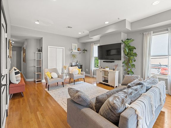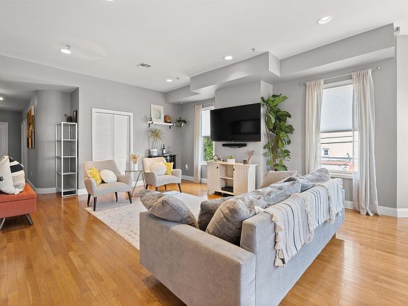 Impeccable 3 bed 1 bath condo, flooded with natural light boasts 1108 sq ft, hardwood floors throughout, open concept layout, bay windows with NYC skyline. The spacious kitchen offers 42" maple wood cabinetry , SS appliances, and a granite countertop breakfast bar! All bedrooms have custom shelving in large closets and the rear bedroom comes with light filtering shades. Modern bathroom, central air & heating, New HVAC, in unit W/D, ample closet space, and a private storage unit in the basement. Enjoy the lifestyle of this active community! 1 Block away Bergenline Ave., offers a variety of international restaurants, convenience and retail stores. Washington Park offers basketball courts, a soccer field, and a playground. 24/7 public transportation via NJ Transit buses and jitneys provides a quick and easy commute into NYC.