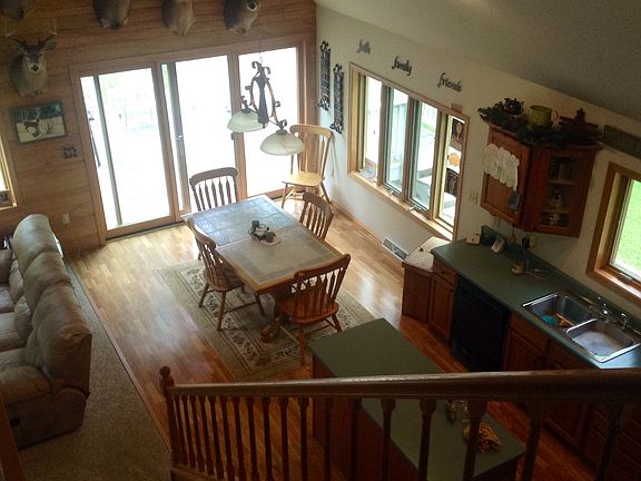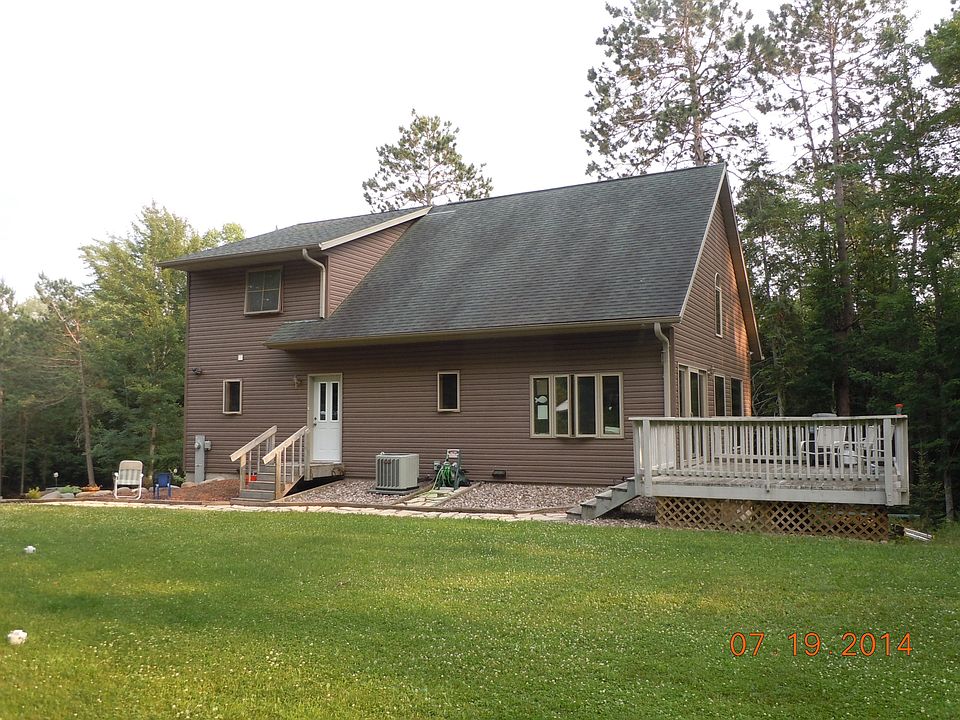 This home was custom built in 2001. It has forced air heat, central air conditioning, electric water heater, gas range/oven and dishwasher. The laundry room is on the main level. There is a den equipped to have a free standing wood stove in the basement. The 17 acres is heavily wooded with very large red pines, mixed with balsams, birch, maple, and cedars. Very large picture windows provides excellent views of nature throughout the year. There is a nice lawn with beautiful landscaping. This home is located in a very quiet and peaceful area and is less than a mile from thousands of acres of public land and many lakes. From the home you can access many miles of state groomed snowmobile trails. Location is approximately 11 miles from woodruff and 14 from Rhinelander.