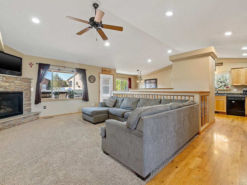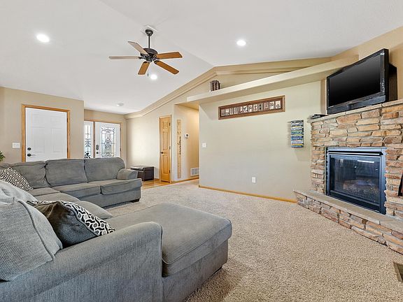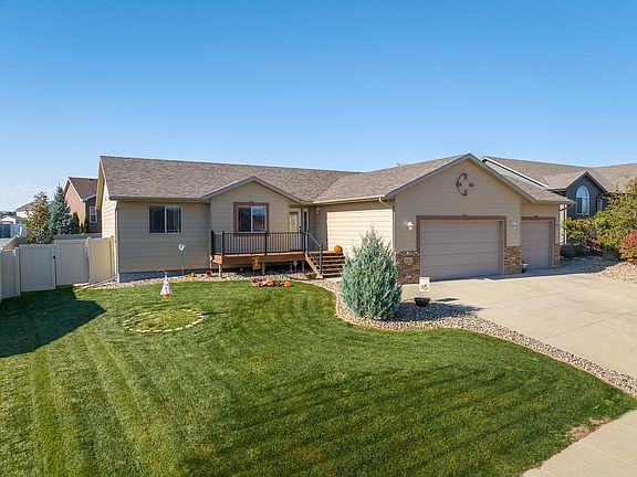 Listed by Jeremy Kahler, KWBH, 605-381-7500. Move in ready ranch style home with a fully finished basement in desired Red Rock Meadows Subdivision! *Sound home mechanics and upgrades throughout make this home a must see! *Aprilaire 600 series whole house humidifier, new Navian tankless water heater, Nutone central vacuum, radon system already in place, beautiful hardwood floors, hikory cabinetry, solid core doors and more! *5 bedrooms, 3 bathrooms and 2,867sqft *Open living space is great for entertaining, with a large living room that flows into the kitchen and dining areas *Spacious living room has vaulted ceilings, a corner gas fireplace and window overlooking the back yard *Wood floors throughout the kitchen and dining areas accent the upgraded cabinetry *Corner kitchen with hickory cabinets, ample counter space, black appliances and a breakfast bar for added seating *Main floor laundry in hallway *Main floor master suite with comfortable bedroom with an ensuite bathroom and walk in closet *2 additional bedrooms and 1 full bathroom on this level *Basement offers an impressive family room complete with a wet bar, large windows and bonus seating space *2 additional bedrooms (1 ntc for door), a full bathroom and mechanical room with storage space *Attached 3-car garage is finished has an epoxy floor and overhead storage *Partially covered Trex deck overlooks the fully privacy fenced back yard with rock accents and 2 external drains