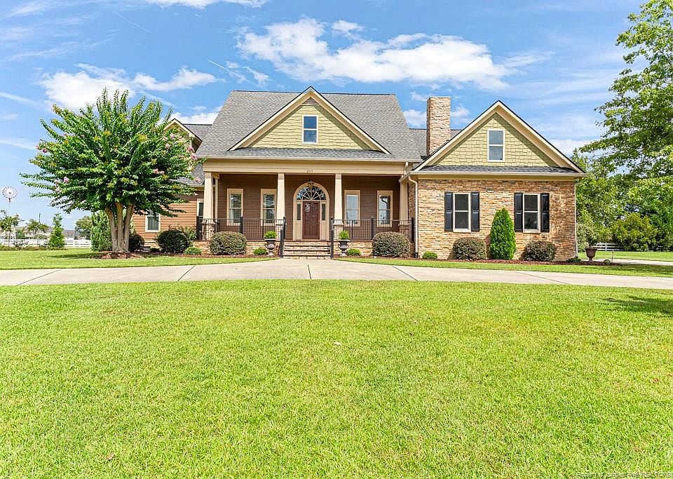 This exceptional craftsman style home is conveniently located to Ft. Bragg, shopping, and dining out. Downstairs features formal dining room, great room with vaulted ceiling and gas fireplace with built-ins. Behind the great room is an oversized, bright sunroom also with 12-14 ft ceiling to relax in! This home is very light and airy with lots of natural light throughout! Open bright and light kitchen with granite counter, stainless steel appliances, opens to eat-in area and a relaxing area. The private master suite with walk-in closets, also private access to sunroom, very private elegant bathroom with jetted tub, large glass slower and double sinks. Downstairs has 2 additional bedrooms with Jack-n-Jill bath. Upstairs features bonus room/4th bedroom and full bath.