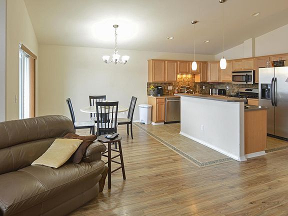 Partial mountain views from this sunny & open concept townhouse near JBER! Upstairs boasts southern exposure for tons of sun, & the vaulted ceilings keep it airy & open. Gorgeous laminate, updated lighting, tiled fireplace, stainless steel appliances, & updated fixtures throughout. Minutes from the highway for quick access to downtown & conveniently close to every urban amenity you love. A find!