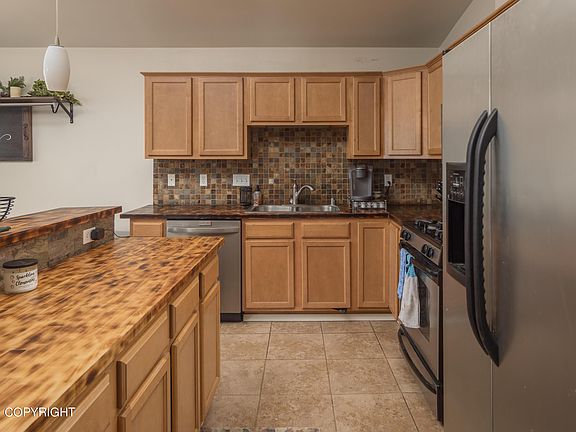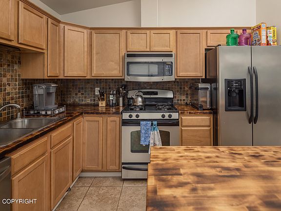 This cute condo is set close to everything. Shopping is right across the highway in Tikatnu Plaza, very close commute to JBER, UAA, Med district. This 3 bed/2.5 Bath condo features 2 bedrooms and a bathroom downstairs and the MBR upstairs. The kitchen and living room offer an open floor plan with a lot of space for entertaining. The kitchen boasts butcher block countertops. Come see today!