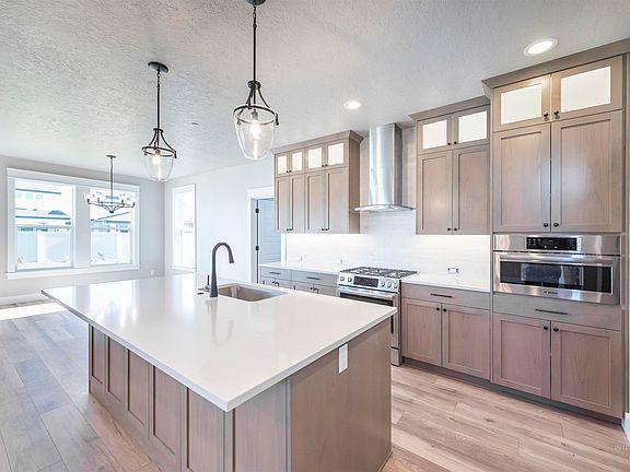 The Milan by Eaglewood Homes brings luxury and efficiency all in just over 2,400 square feet. This plan features a total of four bedrooms plus a downstairs den/ office that can easily be used as a 5th bedroom. The stunning master suite has a separate soaker tub and tiled shower with half glass wall, quartz countertops and custom cabinetry. The Milan master suite has a HUGE master closet that is split for his and hers wardrobes. Don't miss the secret door built into the office trim work that leads to a closet and under-stair storage. Every Eaglewood home comes with premium Moen plumbing fixtures, custom cabinetry, and expertly chosen selections with high quality materials and finishes. Relax by the Sunny Ridge pool and take in the unbeatable foothill views! BTVAI. ALL PHOTOS ARE ACTUAL. Bring your real estate agent (contact us if you don't have an agent yet!) for access to tour the home via lock box. Home is nearly complete!