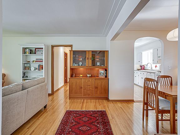 Set back from the street, with a fully fenced yard, this updated three bedroom, two bath rambler is loaded with features. At 1900 SF, the home offers 3 bedrooms on the main level; an updated full hall bath; light and bright, all white kitchen; hardwood flooring on main; open dining and living room feels spacious. Updated lower level offers large family room with classic dry bar and added egress window; large office space; ¾ bath, laundry, and new furnace. BBQ from the lovely back patio. This 1959 rambler is solidly built for today’s living.