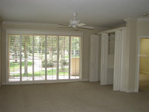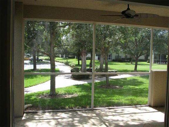 You can move right in to this beautiful, well maintained 2 bedroom 2 bath condominium in the Moorings at Edgewater, a gated community. It has an exceptional location being within walking distance of Lakewood Ranch Main Street with all it's activities, shopping and dining + it is only minutes from Lakewood Ranch Hospital. The home boasts large rooms with plantation shutters throughout, it also has 3 enclosed outdoor patios. The entrance opens to a living/dining combination area with sliding doors at one end opening to a screened patio with a view of a wooded park-like space. The kitchen is large with dark wood cabinets, granite counters, breakfast bar, all appliances including washer/dryer, closet pantry and tile flooring. All wet areas have tile floors, other rooms have carpet. The adjoining family room opens to another enclosed patio and has a wall of built in shelves. All the rooms have ceiling fans and the home has a security system and central vacuum. The master suite has walk-n closets, bath has dual sinks, shower and private water closet. There is a laundry room with storage and sink talso a single car attached garage. The second bedroom has access to another enclosed patio. The community provides a heated pool, spa, tiki bar, fitness center, clubhouse with kitchen, meeting room and outdoor grille. Only minutes to I-75 and UTC Mall.