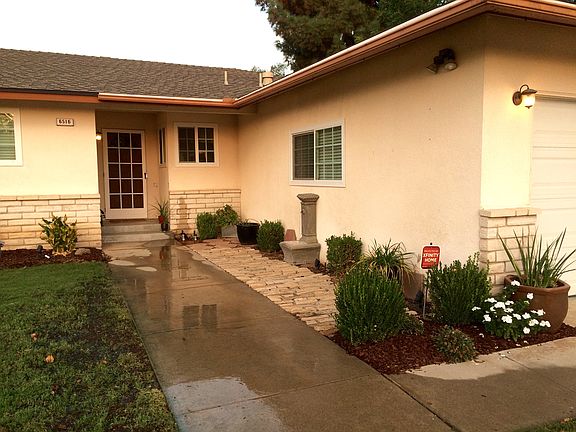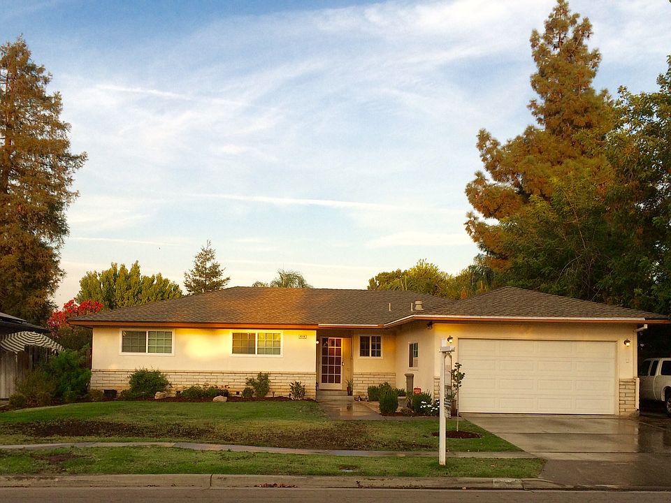 Highly acclaimed Hallmark home is located in a quiet neighborhood and walking distance to the Fresno State Ag land and Sierra walking path, Spacious family room steps down with 81/2 foot ceilings, featuring fireplace that accommodates wood-burning or gas. Wall mount for flat screen TV includes hidden casing behind wall in family room and master bedroom. Home has been upgraded throughout with newer laminent wood floors, Stainmaster carpet, updated light fixtures, canned lighting and ceiling fans in almost every room. Kitchen has been repainted with newer hardware. Both master and hallway bathrooms have been remodeled w/ granite counters and tiled flooring. Generous size master bedroom has two separate walk-in closets. Extra large bedrooms include cable wires. Backyard is beautifully landscaped with extended covered patio w/ storage shed included. Driveway offers much room for extra parking. Property is centrally located near freeways, shopping centers, movie theater and Savemart center.