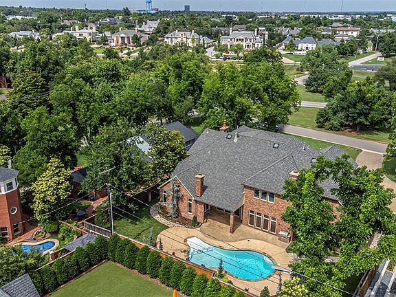 Location, Location, Location! Modern mansion on Grand built in 2006. What a fabulous location in Nichols Hills across from the park! Brent Gibson architect! Many recent updates in 2023 including: interior paint, most hardware, carpet, refinished hardwood floors, quartz counter tops, recessed lighting, fresh pool plaster/tile, stainless appliances, Viking 6-burner gas range w/double ovens & griddle, landscaping, garage doors, etc.....This one is immaculate and absolutely move-in ready! 6 beds (2 down/4 up), 5 full baths, 2 half baths, 4 fireplaces, game room w/wet bar and large theater room up. Loaded with crown molding, speakers, quartz counter tops, plantation shutters, wood floors, 2 staircases, 2 utility rooms (1 down & 1 up) and oversized 3 car side entry garage! Handsome study w/glass doors, fireplace, wood floors, crown & bookcases. Extra large primary bed down w/extra large walk-in closet, crown, shutters & door to patio. Primary bath w/fresh free standing tub, double vanities, make-up vanity & shower. Gorgeous backyard with concrete beach entry diving pool, grill and covered patio with fireplace! This home has it all! Interior design by Grant Mathiews!