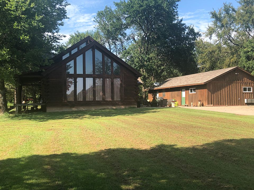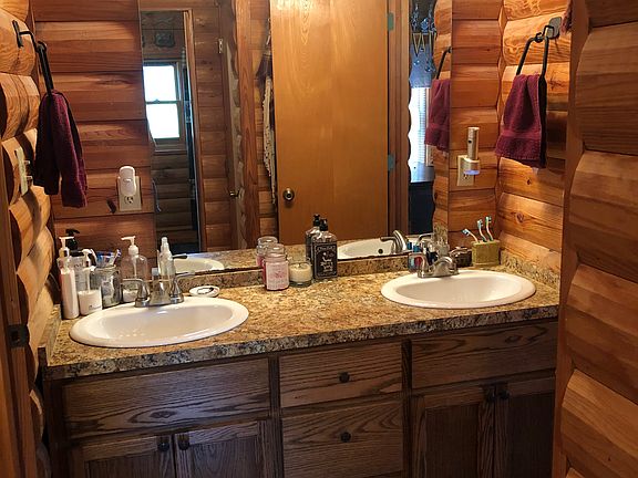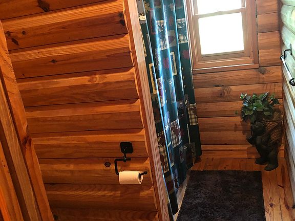 Beautiful Rustic log cabin home on approximately 6 acres. Main bedroom on lower floor with 2 bedrooms and bath upstairs. Open concept kitchen and living room, Large floor to ceiling windows in living area that brightens up the log interior. There is a large porch that overlooks the lawn and pond. Property includes large 900 sq ft barn. Outside has a large lawn with a pond with a small dock. Property also includes a 624 sq ft mother in law apartment and also a 624 sq ft rec room/ work out room with full bath. The home sets off the road so you can hear the sounds of country life while sitting the pond watching the fish jump or have a nice cup of coffee in the morning on the patio. If interested a corner lot joined to the property is available for sale separately.