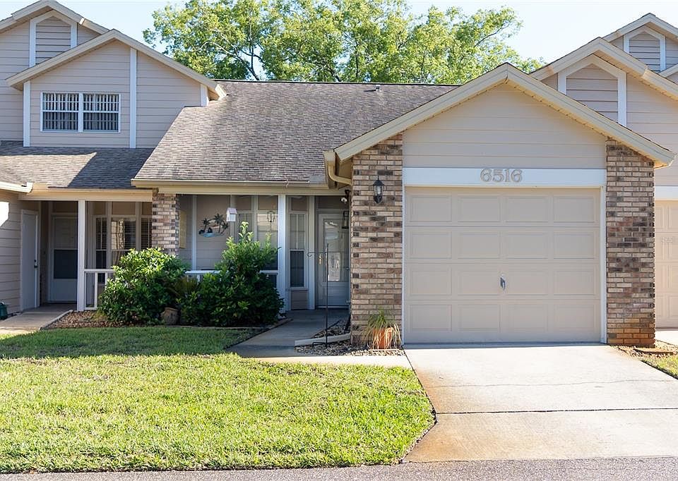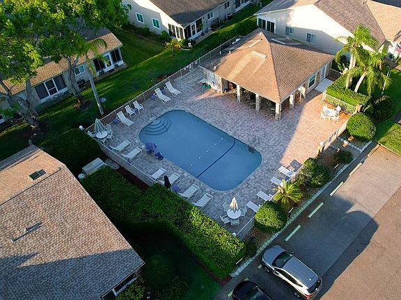 One or more photo(s) has been virtually staged. Welcome to this beautifully maintained 2-bedroom, 2-bathroom villa in the desirable maintenance-free 55+ community of Briar Patch. Enjoy your morning coffee on the spacious front porch or relax in the enclosed Florida room overlooking the serene backyard. This charming single-level home features an open floor plan with cathedral ceilings, a skylight that fills the living area with natural light, and bay windows in the kitchen. Both bedrooms feature upgraded tile plank flooring, adding a stylish and modern touch. The home also includes stainless steel appliances, walk-in closets, and a full-size washer and dryer for added convenience. The low monthly HOA fee covers lawn care, trash, exterior maintenance (including the roof), community pool, recreational facilities, and escrow reserves fund. Ideally located near restaurants, shopping, medical facilities, and beautiful Gulf Coast beaches, this villa offers comfort, convenience, and low-maintenance living. Come see it today!