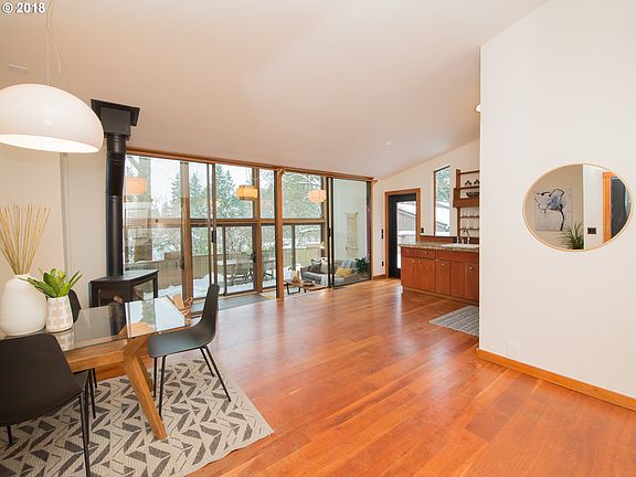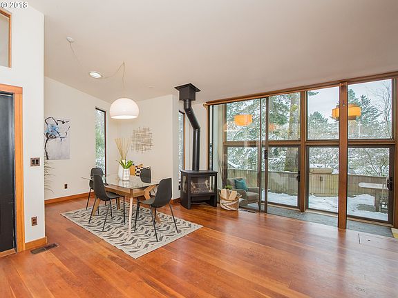 Mid-century modern meets NW architcture at Sunlight Condos, Oregon's first intentional/co-housing community! 15 homes share 7 secluded acres in the wooded hills just mins from dwntwn Prtld. Floor-to-ceiling windows in the vaulted great rm & solarium lead to an expansive deck bringing the outdoors in. Updated ktchn & bath, loft-style bdrms, mstr suite & a den/office too! Community features include woodshop, guest apt, treehouse.