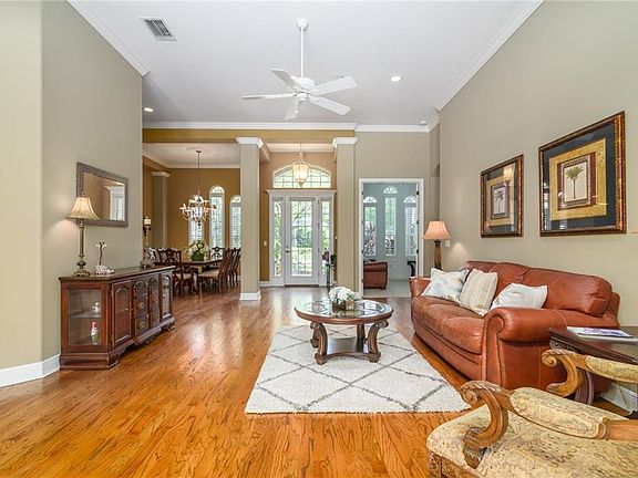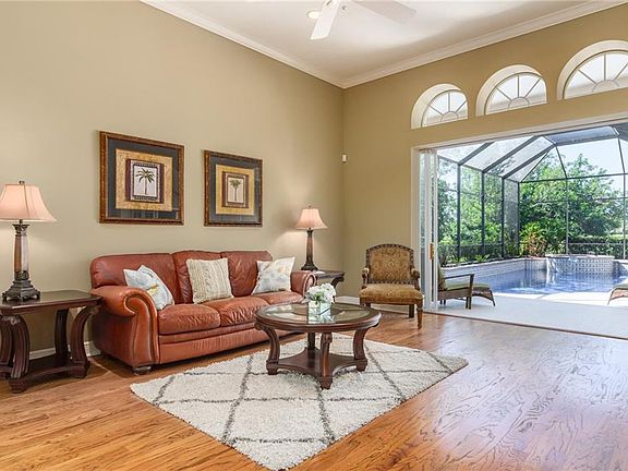 Fusing country club living with Florida splendor, this four-bedroom home in Lakewood Ranch Country Club is nestled on a picturesque expanse of emerald fairways. Experience the majestic park-like setting but in a surprisingly intimate composition where a thoughtful floorplan and landscaping provide supreme serenity. Built by John Cannon Homes, verdant grounds and dappled shade lead the way to the front door. Once inside, tall ceilings, open space, and sliders draw your attention to the pool and golf course beyond. A traditional split plan provides privacy for you and your guests while a den/office gives you flexibility. Elegance is achieved with hardwood floors, neutral colors, modern light fixtures, French doors, crown molding and charming plantation shutters. A gourmet kitchen is poised to enjoy all the action inside or out, featuring white cabinetry, stainless steel appliances, walk-in pantry, and breakfast bar. Meals can be casual or formal as you enjoy breakfast in the eat-in café overlooking the pool or savor family dinner in the dining room. The master suite is a study in tranquility with two walk-in closets and door to the terrace. The master bath features soaking tub, walk-in shower, and two modern pedestal-style sinks. A three-car garage completes the picture. The pool terrace is a jewel of enjoyment with summer kitchen, pool, and spa - perfect for endless entertaining.