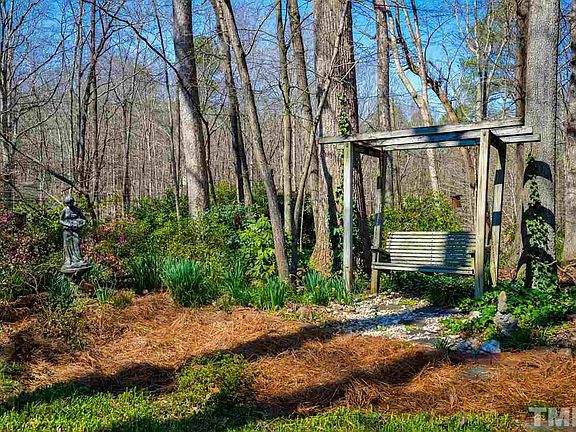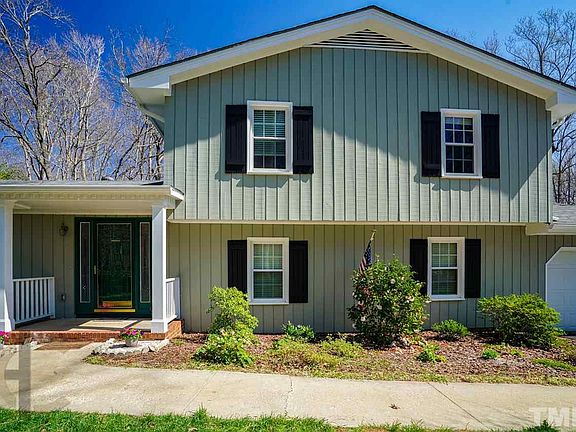 MOVE IN READY, this one-owner, well maintained home boasts 5 large bedrms, 3 updated full baths, open floor plan, living and dining room, den, built in bookshelves, gas fireplace with blower, sun room, hardwoods. Beautiful mature landscaping, neighborhood lake, walking trails, park, playground, fishing, dock, and so much more! New roof (2018), new HVAC/furn (2018), full home gas generator! Grt location-easy access to RTP, I40 and I540 and US70. NO CITY TAXES! Be sure to see virtual tour link! Must see!