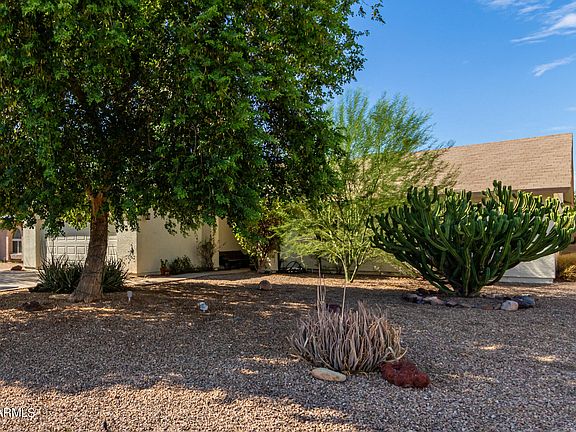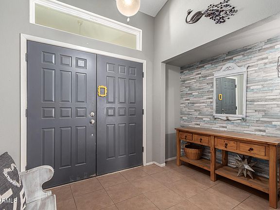Back on the market due to Buyer's financing. Welcome home! This stunning home capitvates you with a beautiful foyer that opens up to the great room with vaulted ceilings, architectural touches, custom paint, and french doors. The kitchen is just off of the dining room and offers stainless steel appliances, stainless and butcher block countertops, and pantry. Large primary suite with double door entry and a beautiful walk-in shower. This home has been lovingly upgraded and it shows! Plantation style shutters and gorgeous flooring throughout the home with no carpeting anywhere. Covered patio in the backyard and mature trees in the yard. The location could not be better, just a short walk from GCC and Sahuaro Ranch Park, dog park, and sports complex. Go see this one today!