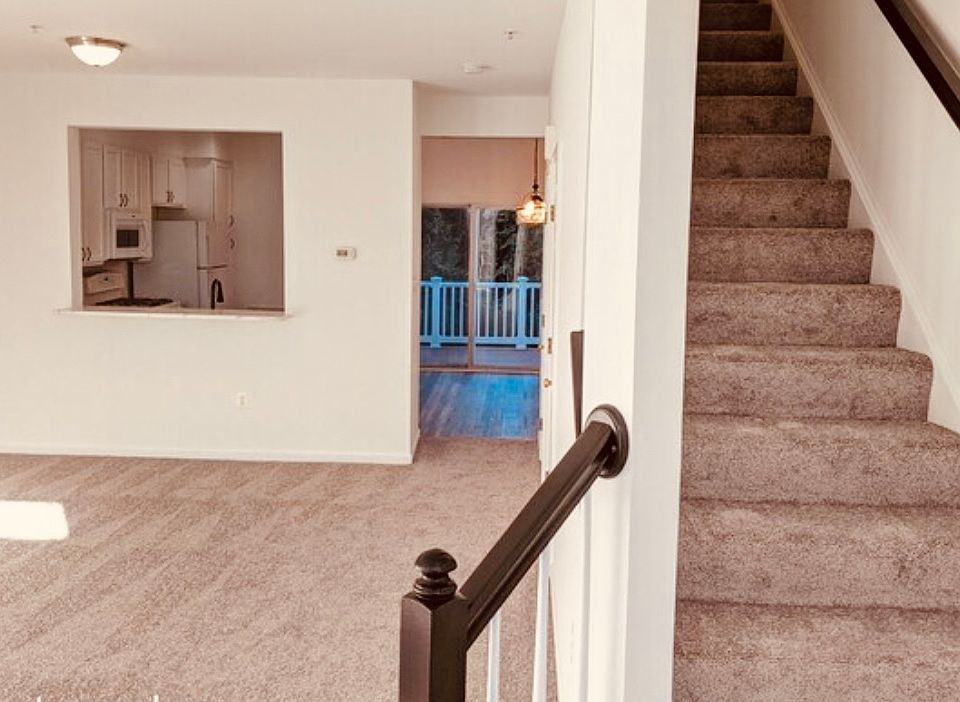 it's an upper-level, two-story condo in the Ballenger Crossing neighborhood. It has an open-concept living area and a deck that overlooks a wooded common area.