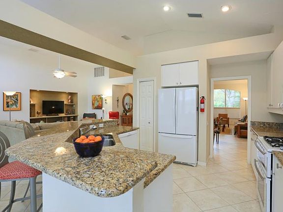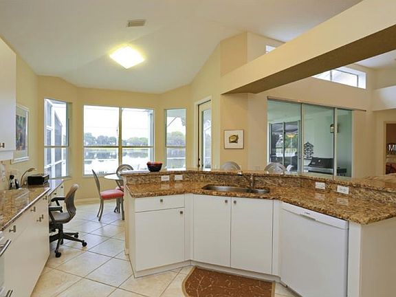 AWC - Taking Backup Offers "It's all about the view!" Exquisite CONTEMPORARY-STYLE Maintenance Free living in University Park with WIDE, OPEN views on the large lake. This home has been lovingly taken care of and boasts a large, open kitchen with granite counter tops, newer appliances & a Duel Fuel Jenn-Air stove! (Natural Gas heats stove, water heater & dryer). Soaring ceilings, the wide view of the lake when you immediately walk in the door and a split plan make this home feel larger than it is. Enjoy coffee outside on your lanai watching the wildlife on the lake as well as the golfers nearing the 17th hole. The community pool is a very short distance, 5 houses away & the Country Club, where you can enjoy meals with new friends is 1 mile north. If you are a golfer or tennis player, you have found HEAVEN. University Park Country Club has been voted the #1 Golf Club in Southwest Florida with 27 holes of championship golf, 11 lighted har-tru tennis courts, a state-of-the-art Fitness Centre. All Residents of University Park must be a member of the club. Many membership levels available; Social Membership initiation fees are currently being waived (Please request a membership info sheet!). One of the most exciting features is where the home is located, on the south side of the community, only a couple of minutes from the University Parkway entrance so you can enjoy what has become the Shopping District of Sarasota/Manatee, only minutes from the new University Town Center Mall, Fresh Market & the future Whole Foods!