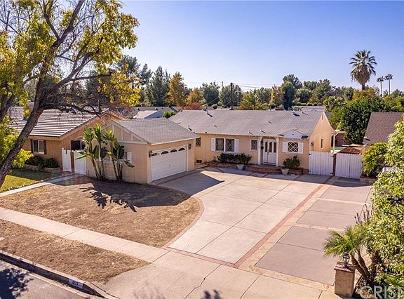 Welcome Home! This Charming Winnetka Single Story Home Features 4 Bedrooms, 2 Bathrooms, Over 1300 Square Feet of Comfortable Living Space on a Large 7500 Square Foot Lot with a Sparkling Pool! Highlighted by New Wood Laminate Flooring in the Entry, Living Room, Dine, Kitchen, Hall and One Bed & Bath, Crown Moldings, French Doors, a Marble Fireplace in the Living Room and Some Updated Windows. Dining Area is off the Sunny Kitchen, plus there is an adjoining Indoor Laundry Room. Expanded Main Bedroom with Ceiling Fan and Great Closet Space with a Closet Organizer. Secondary Bedrooms are all Ample Sized and Full Hall Bath has Convenient Dual Sinks. The Rear Grounds are Perfect for Entertaining with a Sparkling Pool, 2 Covered Patios, Dog Run, Block Walls and a Fruit Tree. Additional Amenities Include an Attached 2 Car Finished Garage with Pull Down Ladder to Extra Storage, Newer Water Heater and Electrical Panel, Central Air & Heat, a Nice Brick Front Porch and So Much More! Located in the Schools of Calvert Charter Elementary, Woodland Hills Academy Middle and Taft Charter High School and Minutes to Trendy Shopping, and Restaurants at Warner Center & The Village, plus Easy Access to the 101 Freeway and Pierce College. It's a Must See!