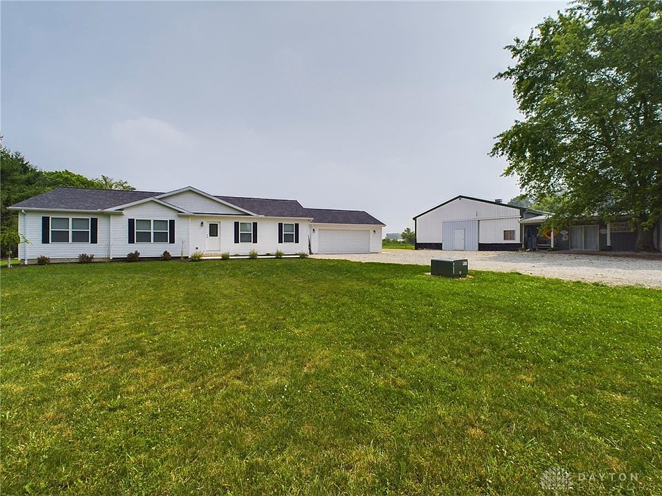 This property is an absolute must-see that fulfills all your requirements! This stunning home, constructed in 2021, is nestled on a sprawling 6-acre lot, complete with a 36x80 pole barn. The barn offers a finished recreational area of 22x30, featuring a fully equipped kitchen and bathroom. As you step through the front door, you'll be greeted by an inviting open layout, with expansive living spaces seamlessly flowing into the kitchen. The kitchen itself is a chef's dream, offering a walk-in pantry, quartz countertops, and an enormous island. Indulge in the luxury of a spacious master suite, complete with a double vanity and walk in closet.