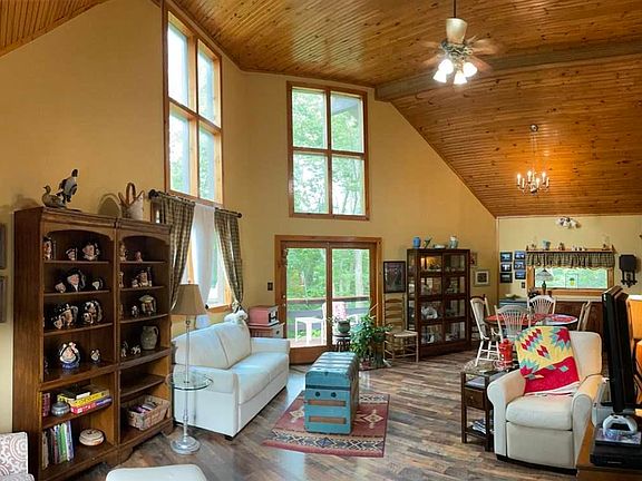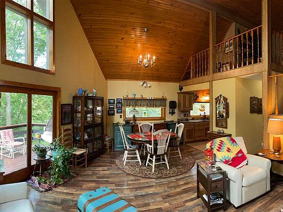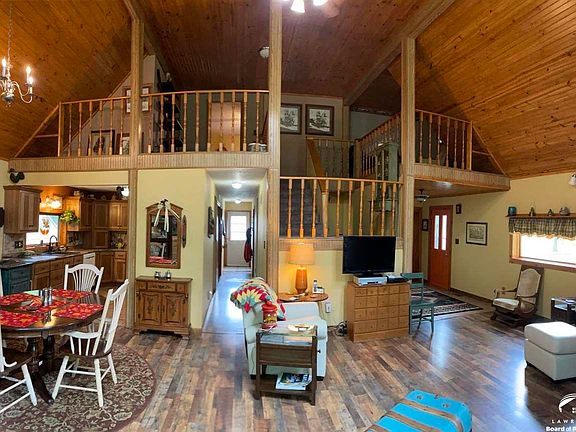 Amazing custom home with Colorado style. Close to Perry Lake and Rock Creek Marina, golf, hiking & mountain bike trails. Soaring windows overlooking trees. Large vaulted Great room with open floor plan. Beautiful wood beamed ceilings. Two loft areas overlooking great room. 3 spacious bedrooms 2 full baths. Kitchen has been updated with hickory cabinets. All appliances including washer dryer can stay. Walkout basement with bonus room & family room & plenty of storage. Newer windows. Wrap around deck.